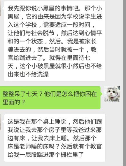 并且我还寻找了更多的当事学生,询问他们小黑屋的事情,他们是这样回复的: