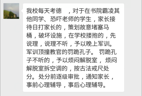 这句我就不吐槽了,各位自己体会,家长是签了授权书,让渡了一部分监护权给学校。但你们合法的前提是,目的帮助学生读书,改正自我,如果学生去了你们学校,不让上课被当成工人用,天天搬砖、搬水泥……