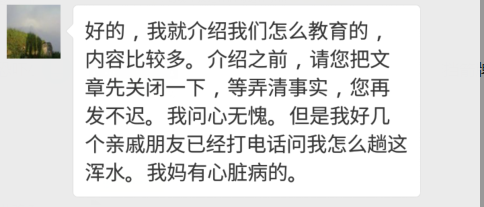 并且用着一些恐吓小孩子的方式,想让我删文章,还拿自己母亲身体不好作挡箭牌: